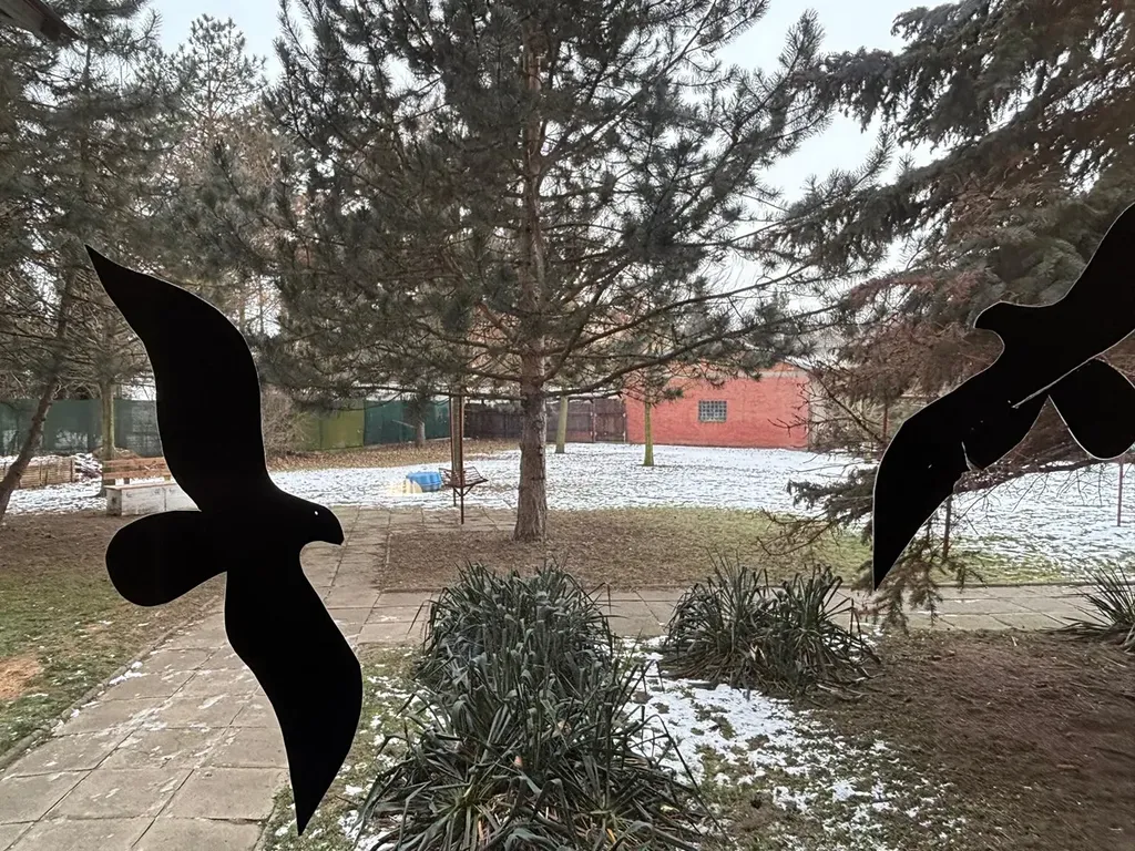 U domu je zeleň, stromy a místo k posezení, které využiješ hlavně od jara do podzimu.