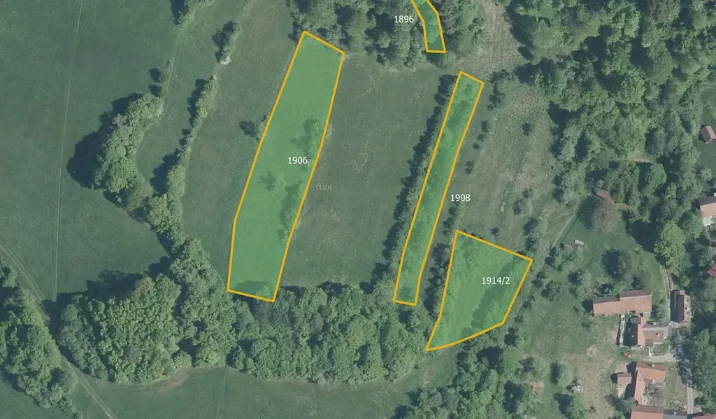 K prodeji je půda na pozemcích parc. č. 1896, 1902, 1906, 1908 a 1914/2 zapsaných na LV 696 v KÚ Lužná u Vsetína.