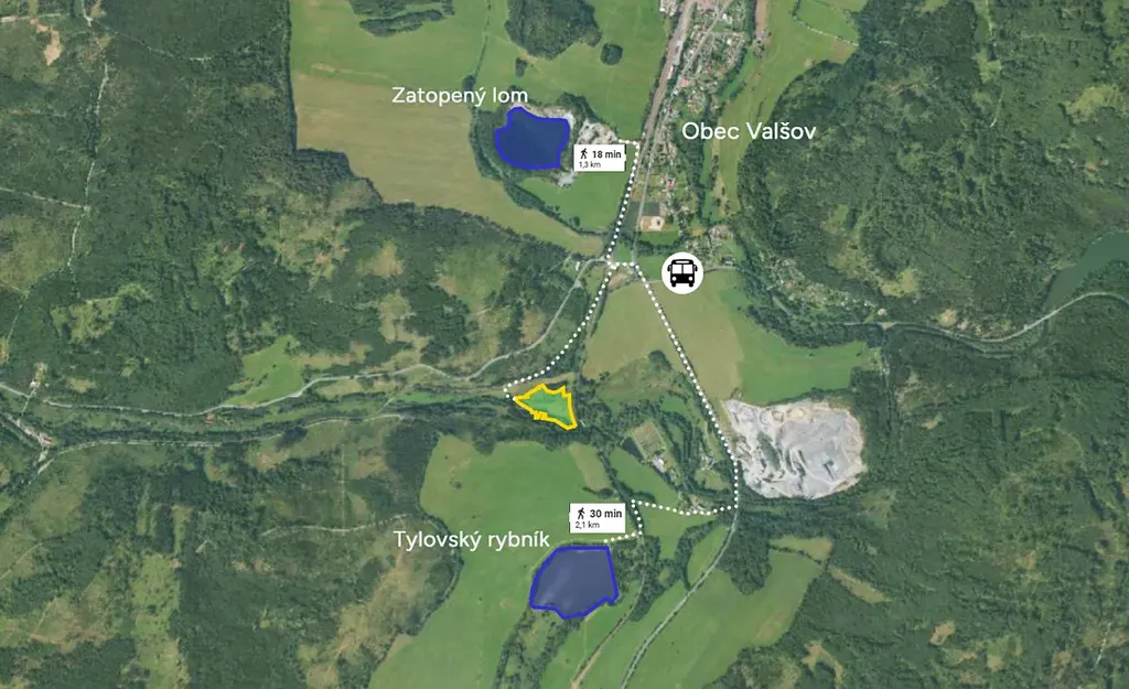 -> blízkost Tylovského rybníka a zatopeného Valšovského lomu
