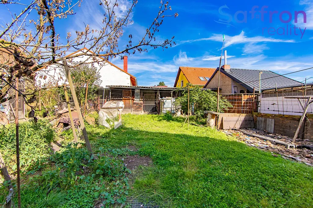 Za dvoukřídlou bránou se otevírá dvůr s parkováním na vlastním pozemku, na který navazuje menší chatka a několik hospodářských přístavků vhodných pro dílnu, sklad či dočasné bydlení během rekonstrukce. Samotný dům je před rekonstrukcí střechy, interiérů i rozvodů, což dává novému majiteli volnost navrhnout dispozice a standard přesně podle svých představ a plně využít potenciál zahrady i dvora k propojení interiéru s venkovním prostorem.