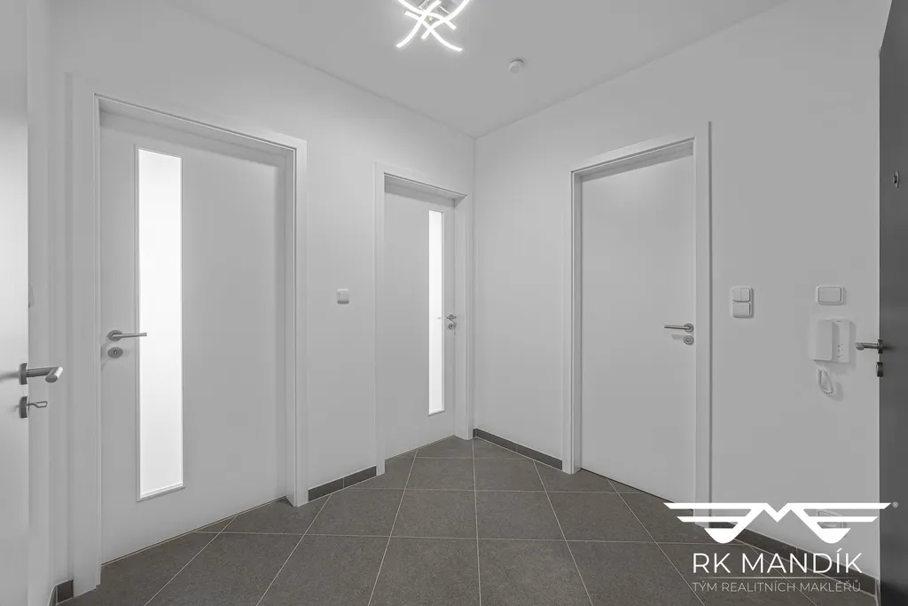 Vstup do bytu tvoří předsíň s bezpečnostními vstupními dveřmi a domovním telefonem.