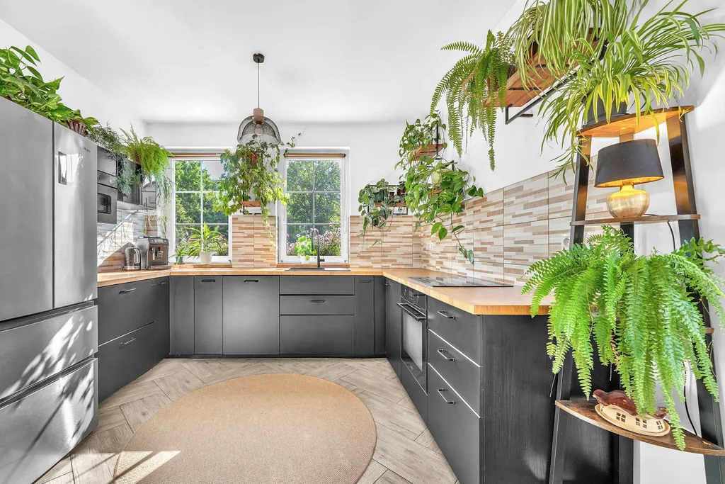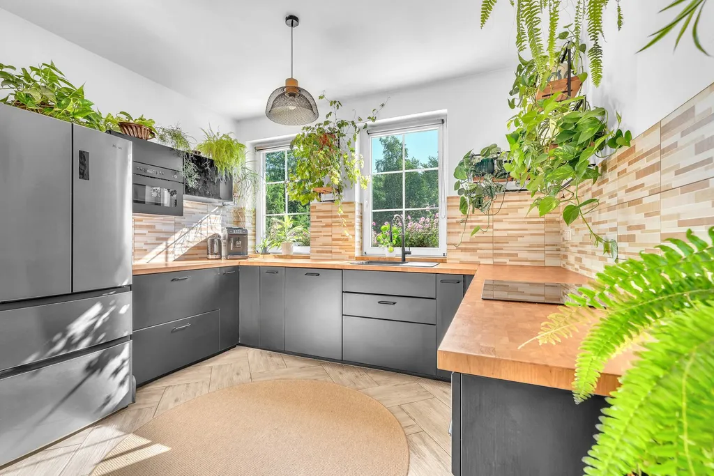 Zahrada je osázena habry pro soukromí a estetiku. V zadní části rostou dva vzrostlé ořechy a třešeň.