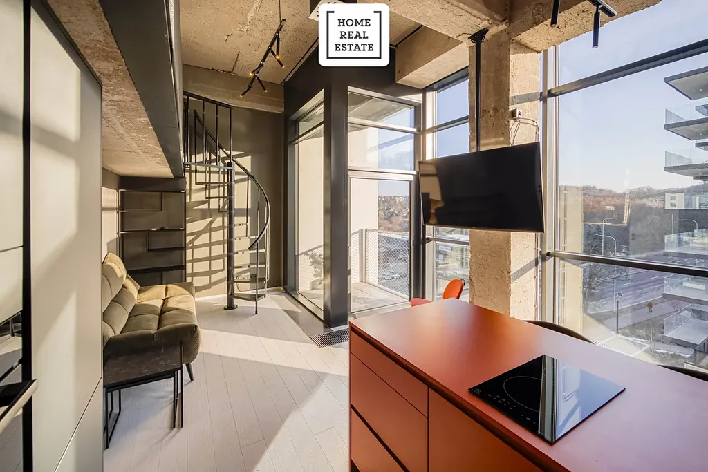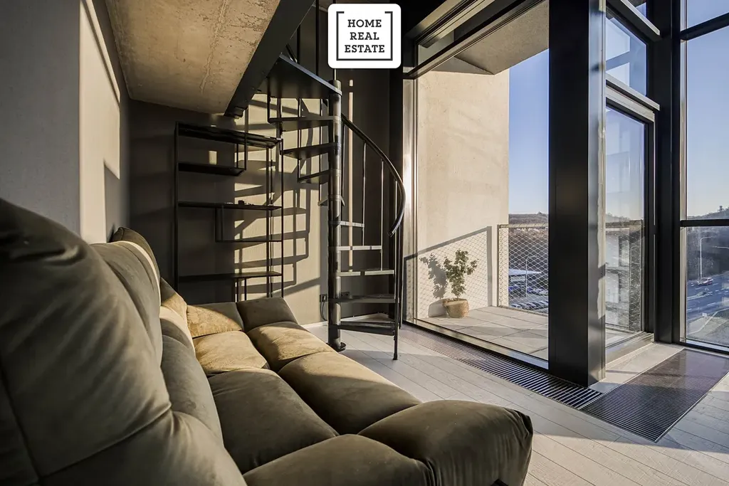 Společnost Home Real Estate si dovoluje nabídnout k pronájmu jedinečný, stylově zařízený, loftový byt o celkové ploše 59 m² (36,7 m² podlahová plocha, 19,4 m² galerie) s lodžii 2,9 m², který se nachází ve 5. nadzemním podlaží exkluzivního loftového komplexu Vanguard.