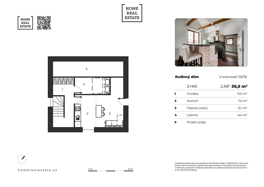 Bytová jednotka o výměře 36,5 m2 v 2. NP: