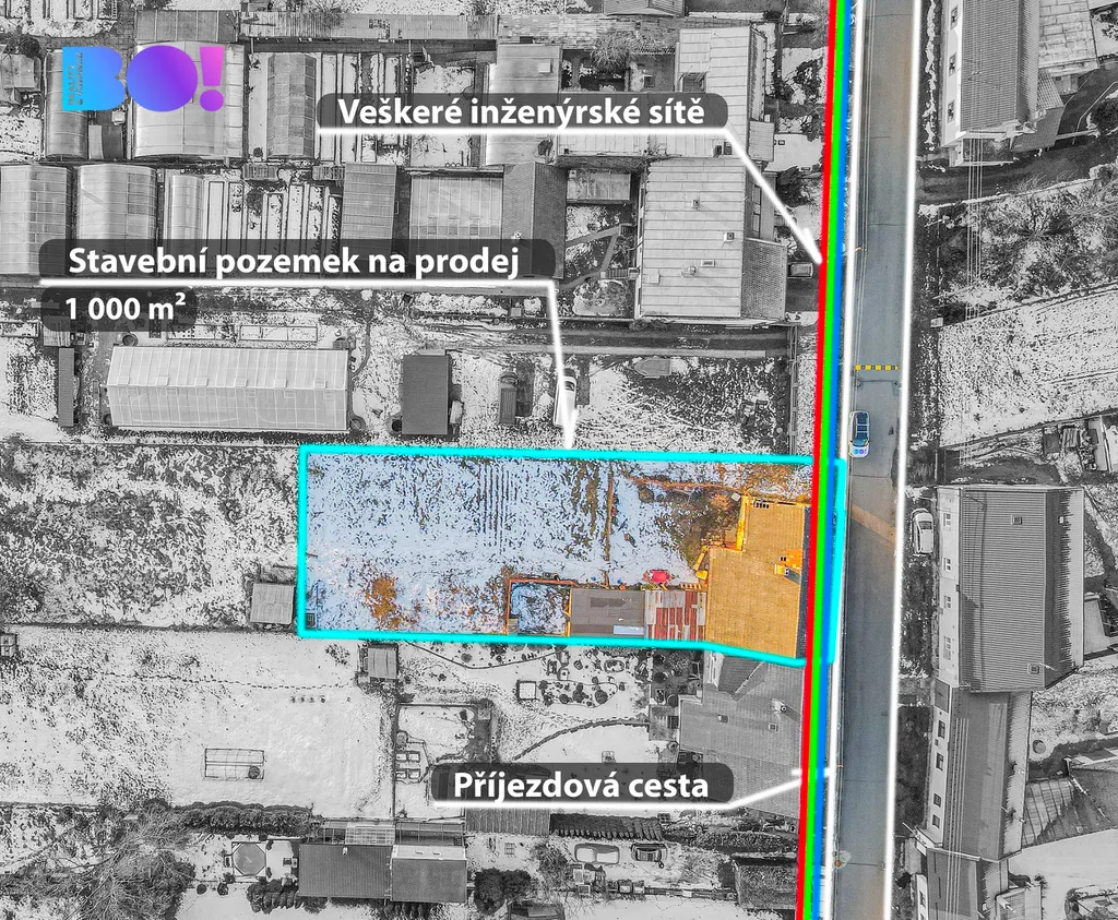Veškeré inženýrské sítě (elektřina, voda, kanalizace a plyn) jsou připraveny na hranici pozemku, což umožňuje rychlé a efektivní napojení budoucí stavby.