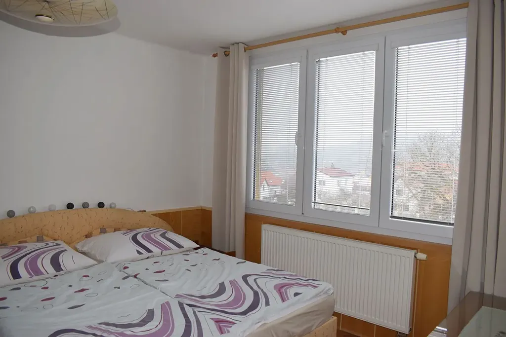 V klidné části města Volyně nabízíme světlý a teplý byt v osobním vlastnictví o velikosti 3+1 s balkónem a velkým sklepem. Byt se nachází v cihlovém domě, ve 3. patře. V r. 2020 proběhla rekonstrukce: nová plastová okna se žaluziemi, koupelna sprchový kout, WC, rozvody vody a odpadu, částečně elektřina, plynový kotel s ohřevem vody, rozvody topení, radiátory, kuchyňská linka se spotřebiči, podlahy dlažby, plovoucí podlahy, repase parket...Plochy jednotlivých místností: kuchyně 13,60 m2, pokoj 10,50 m2, pokoj 14 m2, pokoj 13,80 m2, předsíň 5,70 m2, zděná koupelna s oknem 3 m2 + WC 1,10 m2, sklep 13,53 m2, lodžie 2,70 m2. Do fondu oprav se hradí částka ve výši 770, Kč včetně stočného (voda se neplatí, je vlastní studna) a zálohy na elektřinu ve společných částech domu. Záloha na elektřinu a plyn dle spotřeb, každý si hradí samostatně. Vybavení bytu lze částečně ponechat. V bytě lze umístit krbová kamna, komíny jsou funkční. Dům je klidný, udržovaný a na patře jen 3 byty. K nemovitosti náleží i podíly na pozemcích v okolí domu. V bezprostřední blízkosti obchod s potravinami, hřiště, tenisové kurty, nedaleko náměstí. Ve Volyni veškerá občanská vybavenost. PENB nebyl dodán, proto uvádíme třídu G.