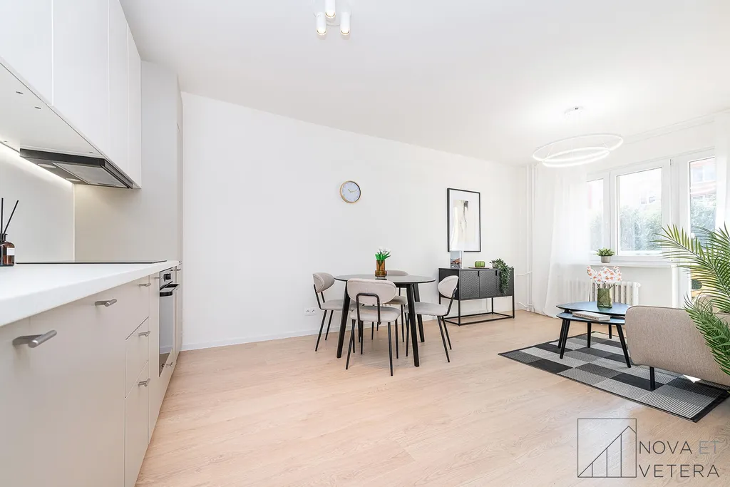 Byt právě prochází kompletní a kvalitní rekonstrukcí, která zahrnuje nové rozvody elektřiny, vody a odpadů, nové podlahy, moderní obklady a dlažbu značky Marazzi, koupelnu se sprchovým koutem a sanitou Grohe a také novou kuchyňskou linku se spotřebiči Gorenje, na kterou je poskytována prodloužená záruka 5 let.