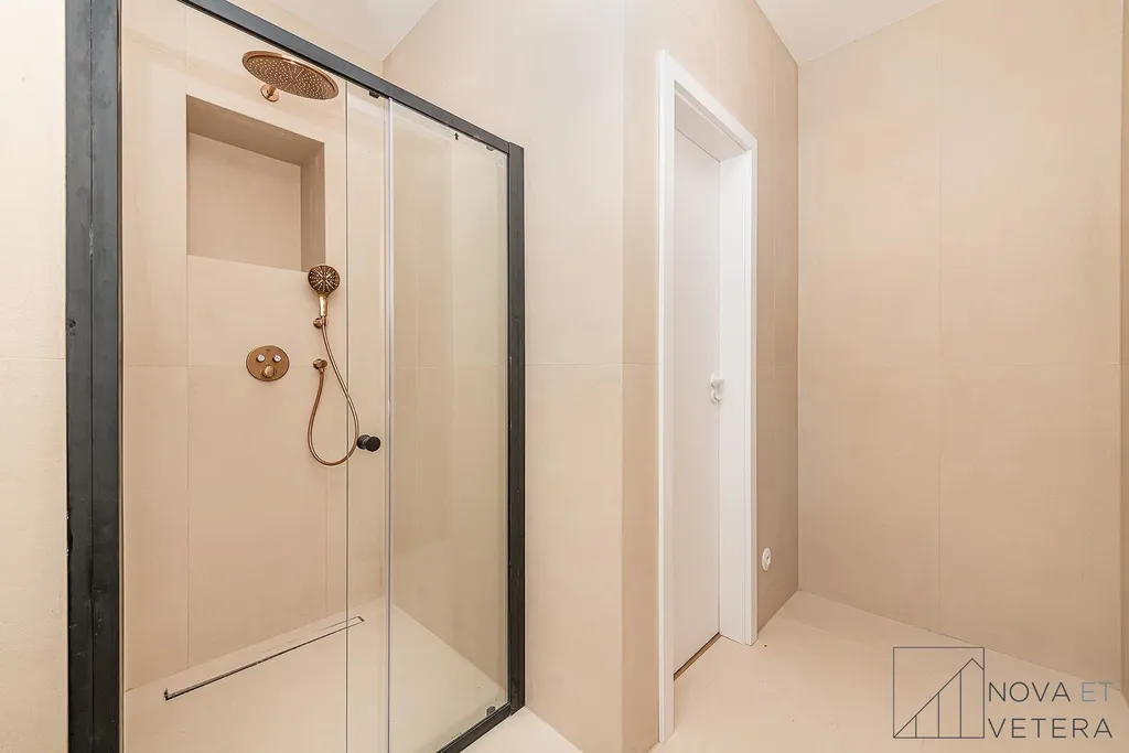 Vysoký standard kompletní rekonstrukce zahrnuje nové rozvody elektřiny, vody a odpadů. Dále rekonstrukce zahrnuje dřevěné parketové podlahy, kvalitní velkoformátové obklady a dlažbu od italského dodavatele MARAZZI. V koupelně a na toaletě naleznete sanitu značky GROHE. Moderní kuchyňská linka disponuje mimo jiné kvalitními spotřebiči značky BOSCH a zapuštěným granitovým dřezem.