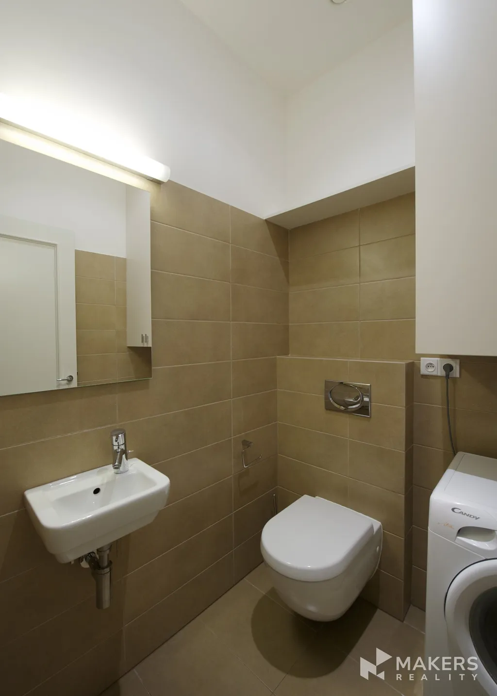 Byt sestává z obývacího pokoje, spojeným s jídelnou a moderním kuchyňským koutem (trouba,el. varná deska, mw trouba, digestoř, lednice, myčka, drtič odpadu), který je vhodně umístěn v rohu místnosti a tím oddělen od zbylé části obývacího pokoje, dale pohodlnou sedací soupravou a TV. V ložnici najdete velkou manželskou postel a dostatek uložných prostorů. Pracovna s krásným výhledem na Prahu je umístěna na galerii. Koupelna je vybavena vanou a toaletou. V předsíni jsou další úložné prostory.