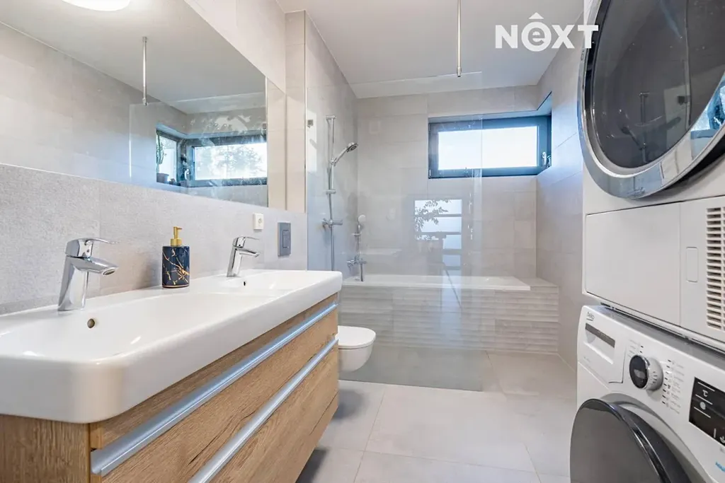 Dispozice domu je prakticky řešena a nabízí dostatek prostoru i soukromí pro větší rodinu. Součástí jsou dvě koupelny, což výrazně zvyšuje komfort každodenního bydlení – jedna koupelna se nachází v přízemí, druhá v horním patře. Dům je kompletně zařízený a připravený k okamžitému nastěhování.