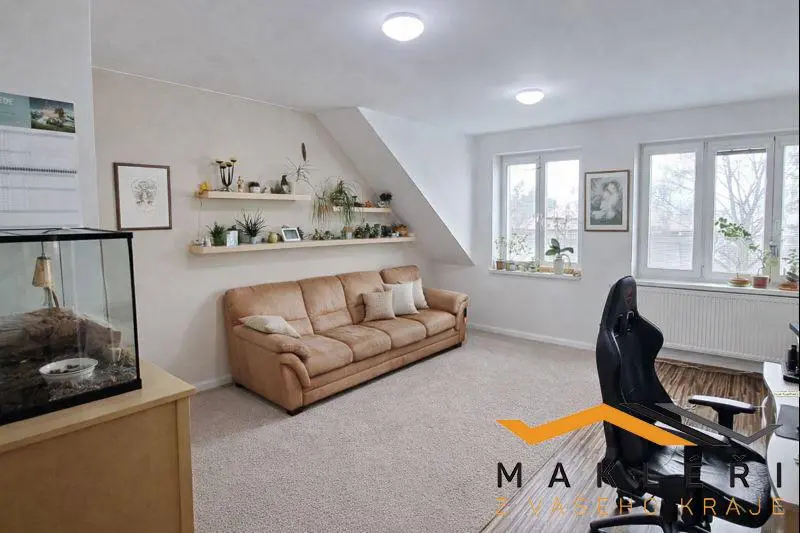 Byt disponuje atraktivní dispozicí 4+kk a je řešen jako mezonet v menším bytovém domě se třemi bytovými jednotkami, což zajišťuje klidné bydlení a dostatek soukromí.