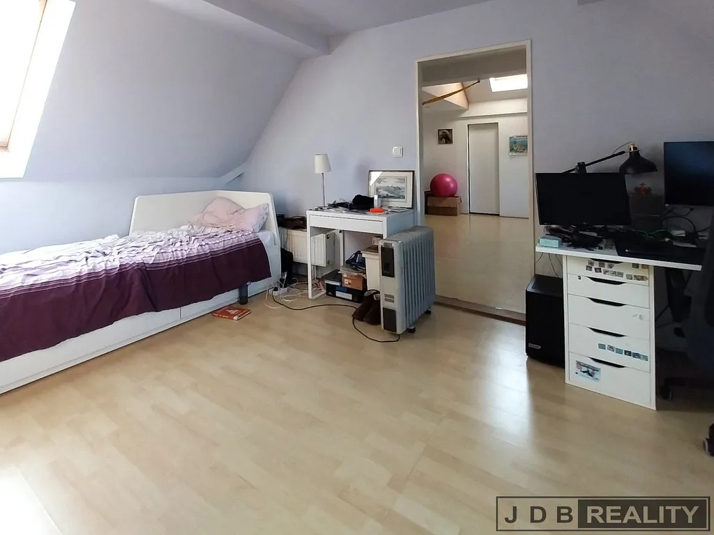 Nabízíme k pronájmu podkrovní byt o celkové velikosti 103 m² a dispozici 4+kk v rodinném domě v centru Roztok u Prahy. Dům se sedlovou střechou z roku 2000 se nachází na pozemku o celkové výměře 622 m². Do bytové jednotky je přístup po vnějším schodišti, což zaručuje absolutní soukromí. Bytová jednotka disponuje kuchyní s jídelním koutem a kuchyňskou linkou s elektrickým sporákem, troubou a myčkou, velkým obývacím pokojem, koupelnou s vanou a wc, dalším samostatným wc, dalšími dvěma pokoji a šatnou (komorou). Vzhledem k dostatečnému množství střešních oken je celý byt velice dobře prosvětlen.