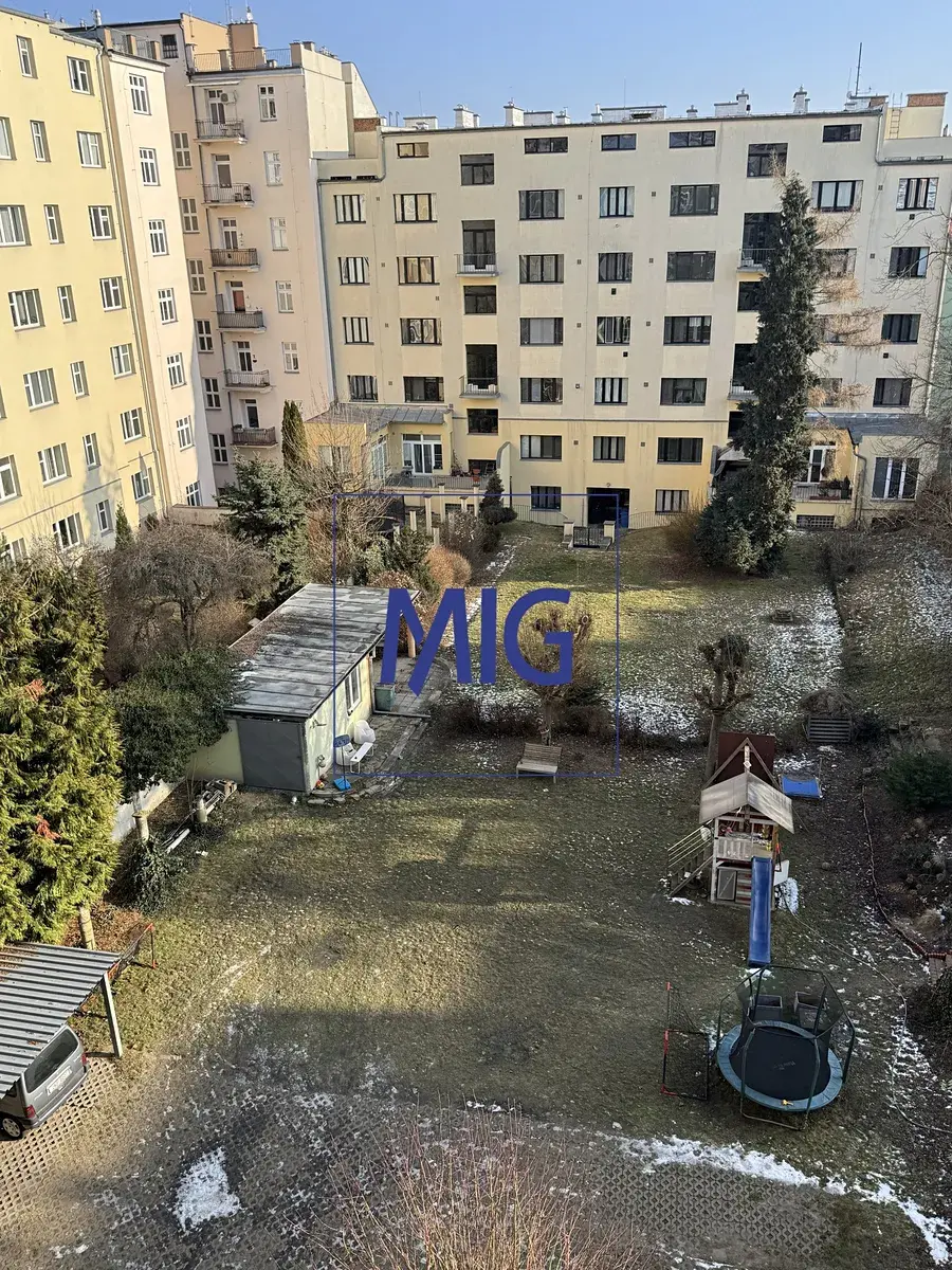 K bytu náleží společný balkón v mezipatře a společná zahrada.