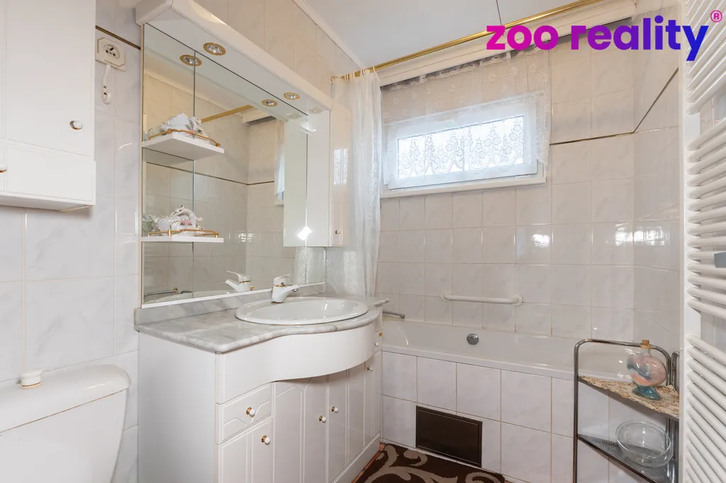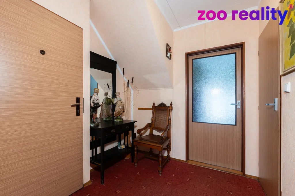 V 1. nadzemním podlaží nejdeme garáž s dílnou, vstupní předsíň, technickou místnost s plynovým kotlem a nádrží na ohřev teplé vody, samostatnou toaletu s prostorem na pračku i sušičku, centrální pokoj a menší pokojík. Do patra vedou dřevěné schody a tady je k dispozici kuchyně, obývací pokoj, ložnice a koupelna s vanou. Do půdních prostor, s pochozí výškou, se dostaneme skládacími schody