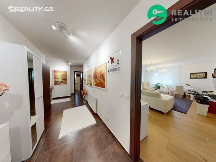 Byt je v novostavbě, 3+kk, ve 4 NP, výtah, 2 x terasa (12 a 13 m2), 2 x garážové stání v suterénu domu, centrální topení, podlahy keramické, 2 x WC, 1 x koupelna, byt je vybavený kuchyňská linka , spotřebiče, vestavěné skříně na chodbě, v ložnicích, optický internet ,