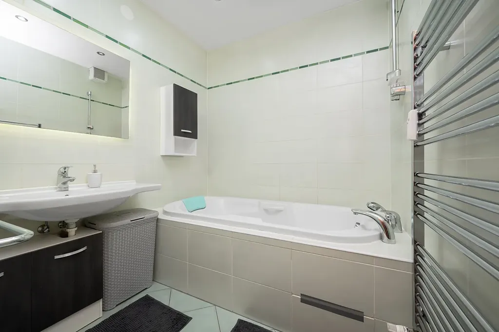V obytných místnostech a kuchyni jsou plovoucí podlahy, na chodbě a v koupelně dlažba. Koupelna je vybavena vanou, toaleta je oddělená, což zvyšuje komfort v rámci bydlení.