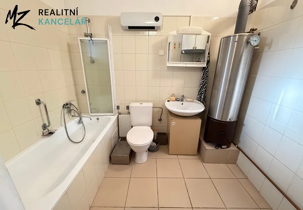 Další chodba pokračuje do předsíně, na druhou koupelnu (starší) s WC a samostatným bojlerem, a následně je zde výstup za dům.