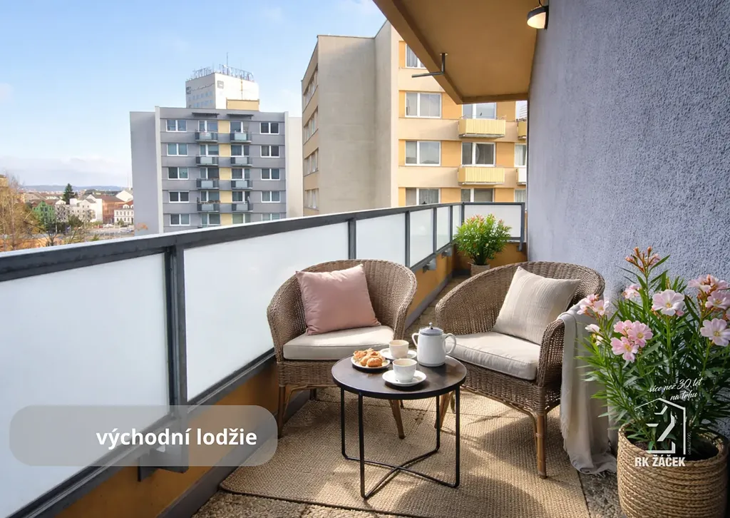 Moderní 2+kk se dvěma lodžiemi a výhledem na centrum – klid a pohodlí jen pár kroků od historického jádra Českých Budějovic