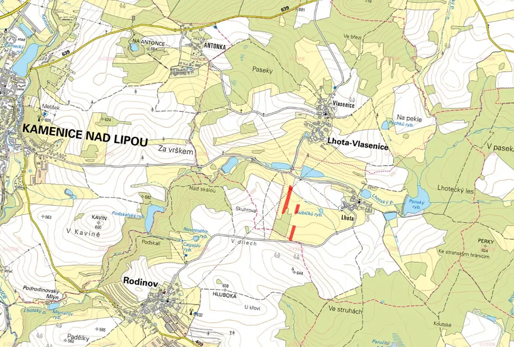 V katastrálním území Lhota u Kamenice nad Lipou, obec Lhota-Vlasenice, okres Pelhřimov, nabízíme k prodeji soubor zemědělských pozemků. Všechny pozemky jsou zapsány na listu vlastnictví č. 1529 a nacházejí se ve výlučném vlastnictví.