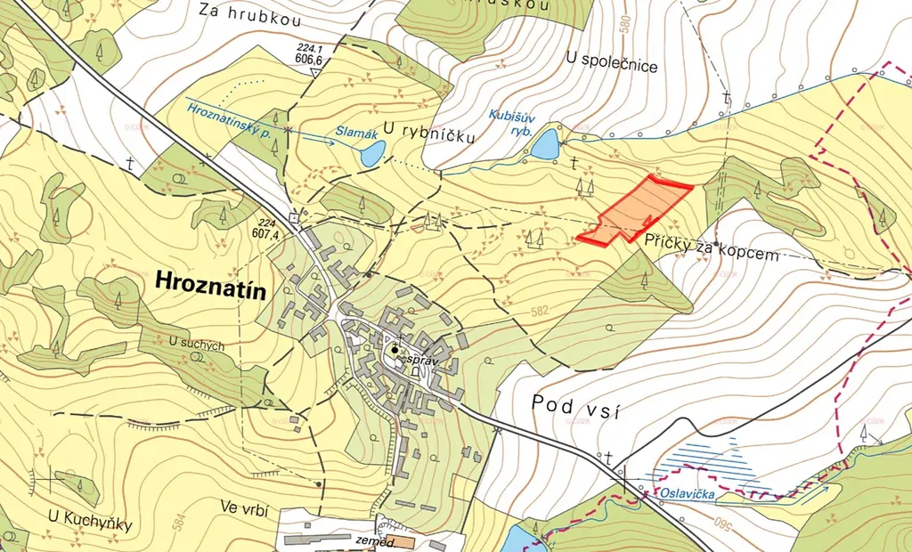 V katastrálním území Hroznatín, okres Třebíč, nabízíme k prodeji souvislý celek zemědělských pozemků. Pozemky jsou zapsány na listu vlastnictví č. 411 a jsou ve výlučném vlastnictví.
