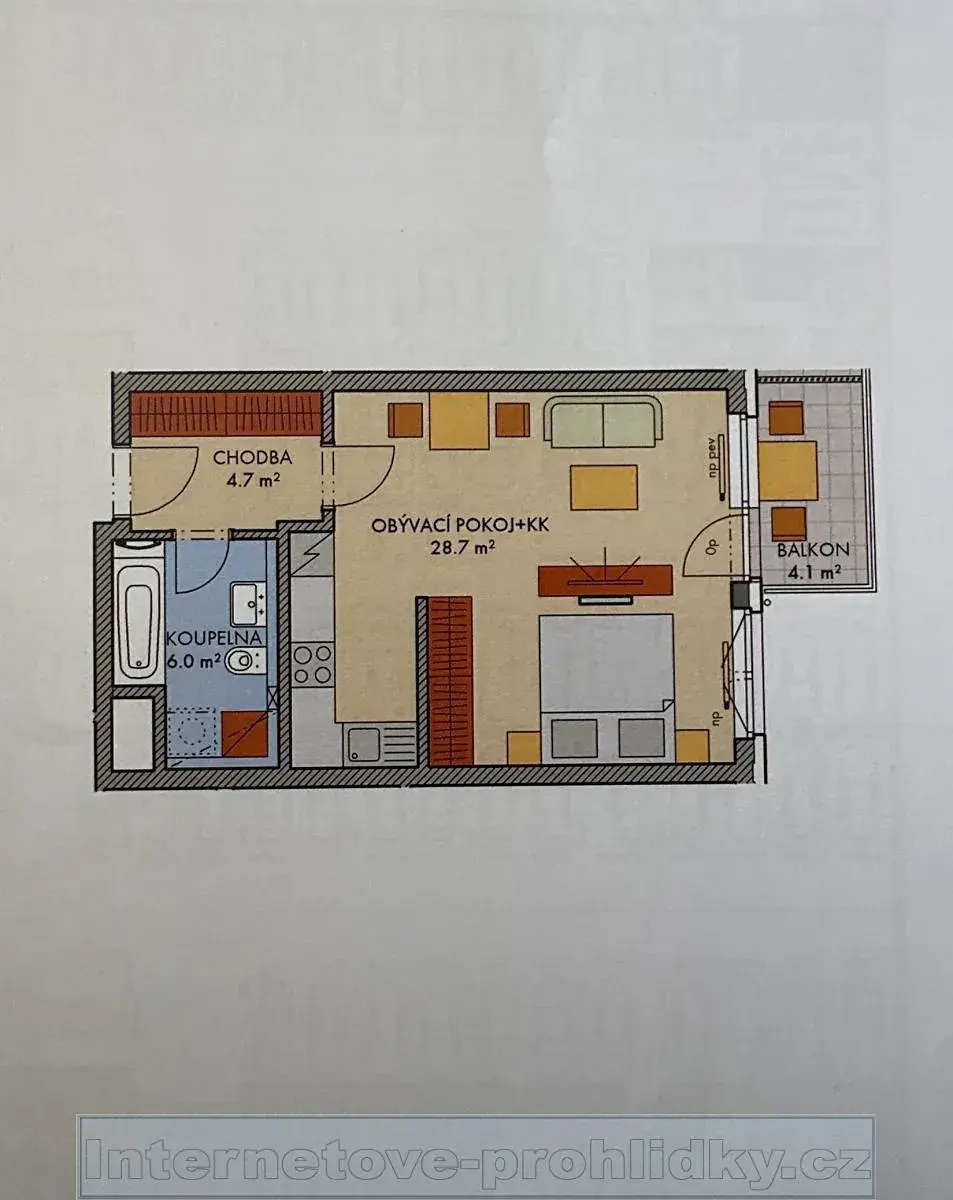 Družstevní byt 2kk s balkónem 42 m, kuchyňská linka včetně všech spotřebičů, ložnice oddělená policovou příčkou, v chodbě vestavěná skříň. K bytu náleží balkón o ploše 4 m. K dispozici sklep o ploše 2 m pro uskladnění sezonních věcí a dalšího vybavení. Nájemné 19 500 Kč + 5 000 Kč služby, energie se převádí na nájemce, 1 500 Kč parkovací stání v garáži. Vratná kauce 25 000Kč, provize 25 000Kč