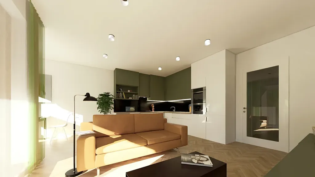 Cena bytové jednotky zahrnuje vysoký volitelný standard (kvalitní vinylové podlahy, zařizovací prvky koupelen Villeroy & Boch, Grohe, velkoformátové obklady a dlažba, plné laminátové CPL dveře a další).