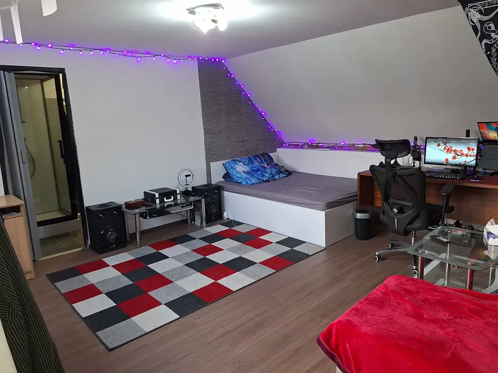 Součástí domu jsou dvě plnohodnotné koupelny, každá vybavena vanou i sprchovým koutem, což zajišťuje maximální komfort i pro větší rodinu. V obývacím prostoru je umístěn krb, který nejen vytváří příjemnou atmosféru, ale zároveň slouží jako efektivní doplňkový zdroj vytápění.