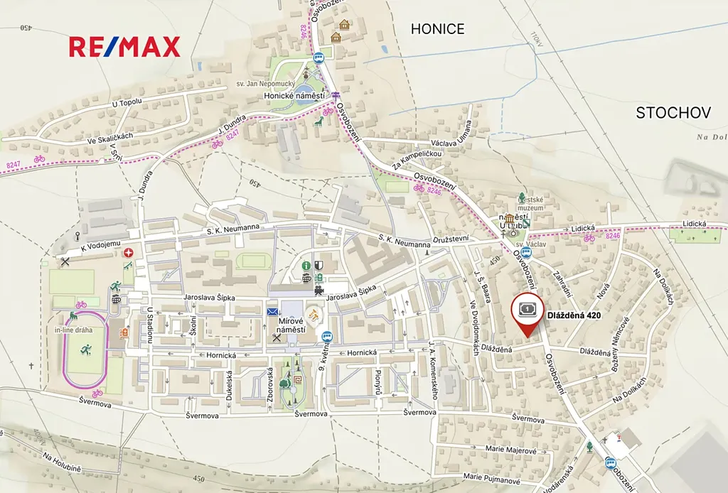 Nemovitost je napojena na všechny inženýrské sítě - vodovod, kanalizaci, elektřinu i plyn. Místní infrastruktura Stochova nabízí širokou škálu služeb, včetně obchodů, škol a restaurací, a také mnoho možností pro aktivní trávení volného času, pěkné cyklostezky v okolí apod..