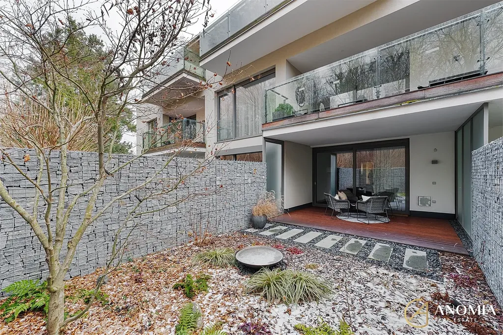 Součástí bytu je terasa o velikosti cca 15 m², lodžie a soukromá zahrada o ploše cca 25 m², což je v této lokalitě výjimečný prvek.