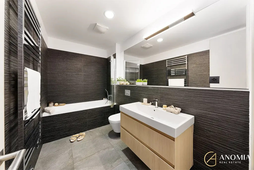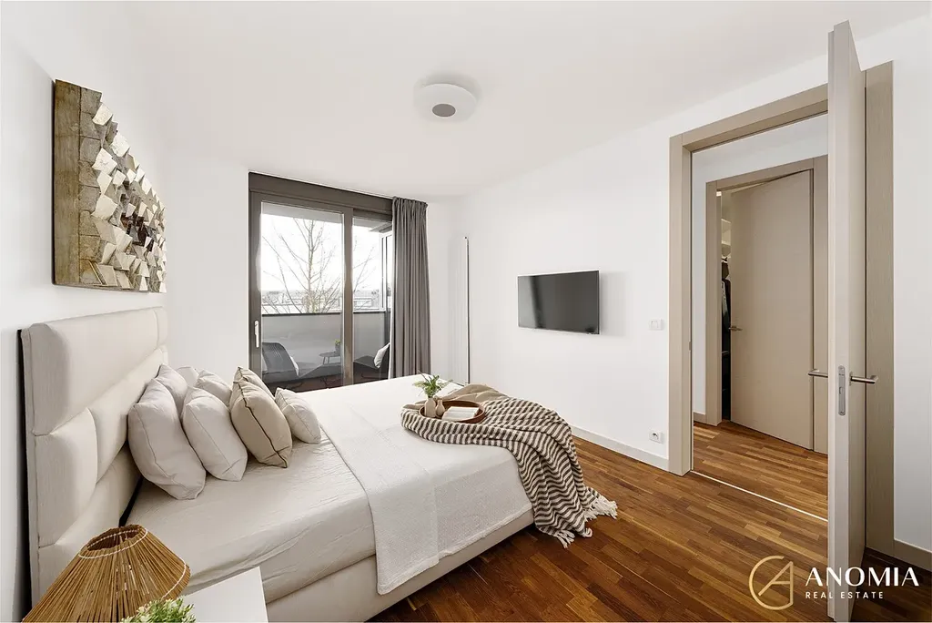 Byt nabízí více než 116 m² čisté podlahové plochy a je navržen s důrazem na funkčnost, komfort a dlouhodobou hodnotu. Dominantou je prostorný obývací pokoj s kuchyňským koutem o velikosti téměř 50 m². Dispozice dále zahrnuje oddělenou klidovou část s ložnicemi, velkou šatnu, technickou místnost a dostatek úložných prostor.