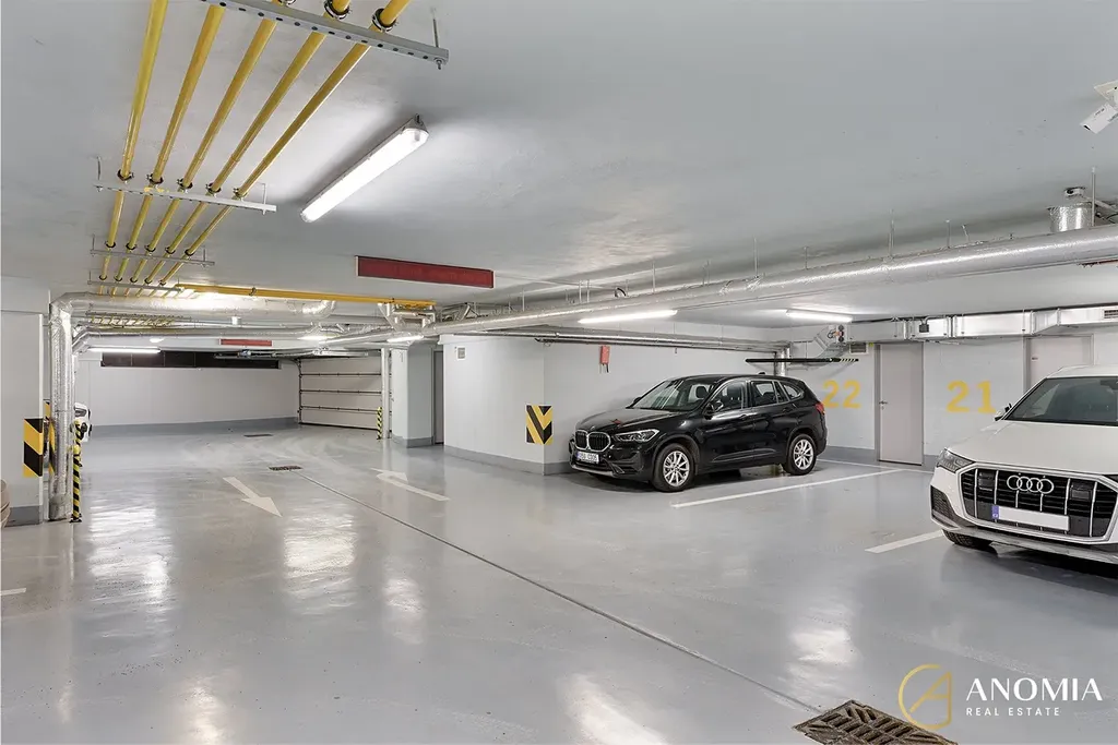 Součástí nabídky je jedno parkovací stání v garážích přímo v domě a sklepní kóje umístěná bezprostředně u tohoto stání