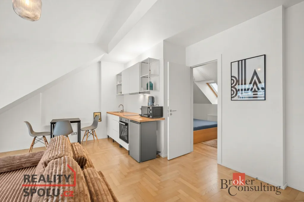 Pronájem podkrovního bytu 2+kk, 48 m², balkon – Praha 10, Vršovice (Průběžná 760/54)