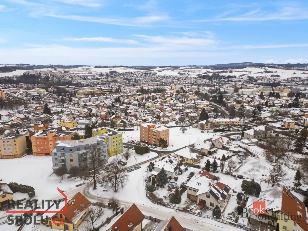 Pelhřimov nabízí kompletní občanskou vybavenost – školy, školky, lékaře, obchody i služby máte v docházkové vzdálenosti. V bezprostřední blízkosti domu se nachází dětské hřiště a okolí je klidné, obklopené zelení.