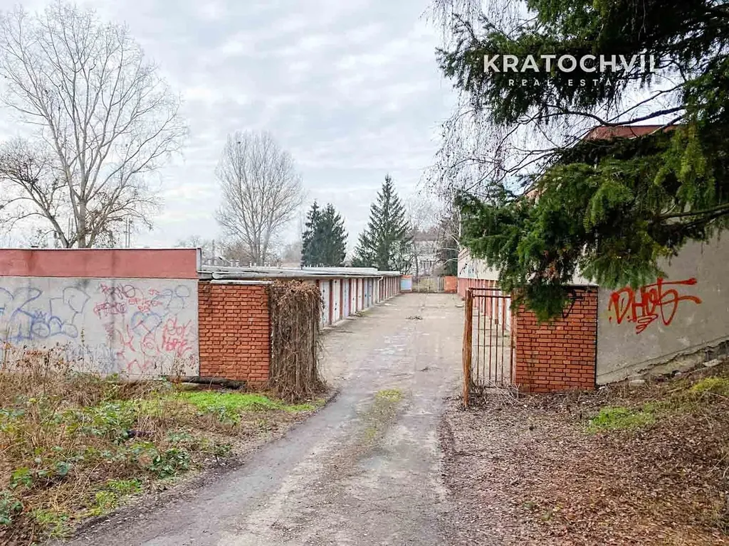 Samostatná garáž s plechovými vraty, umístěná v bloku jiných garáží je volná k pronájmu od 1. Března.