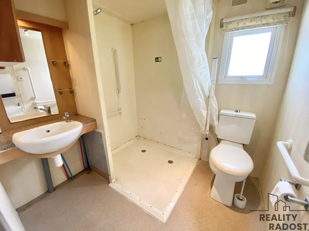 Na pozemku je umístěný mobilheim o rozměrech 48 m2, který je součástí prodeje. Mobilheim je dispozičně řešený jako 3+1, je zde kuchyně, prostorný obývací pokoj, dvě ložnice a velká koupelna s umývadlem, sprchovým koutem a WC. Mobilheim je zateplený s novou střechou. Mobilheim je napojený na elektřinu, obecní kanalizaci a vodovod. Mobilheim se vytápí elektrickými přímotopy nebo plynem, ohřev vody je zajištěn plynovou karmou . Na mobilheim navazuje terasa s výhledem do zahrady.
