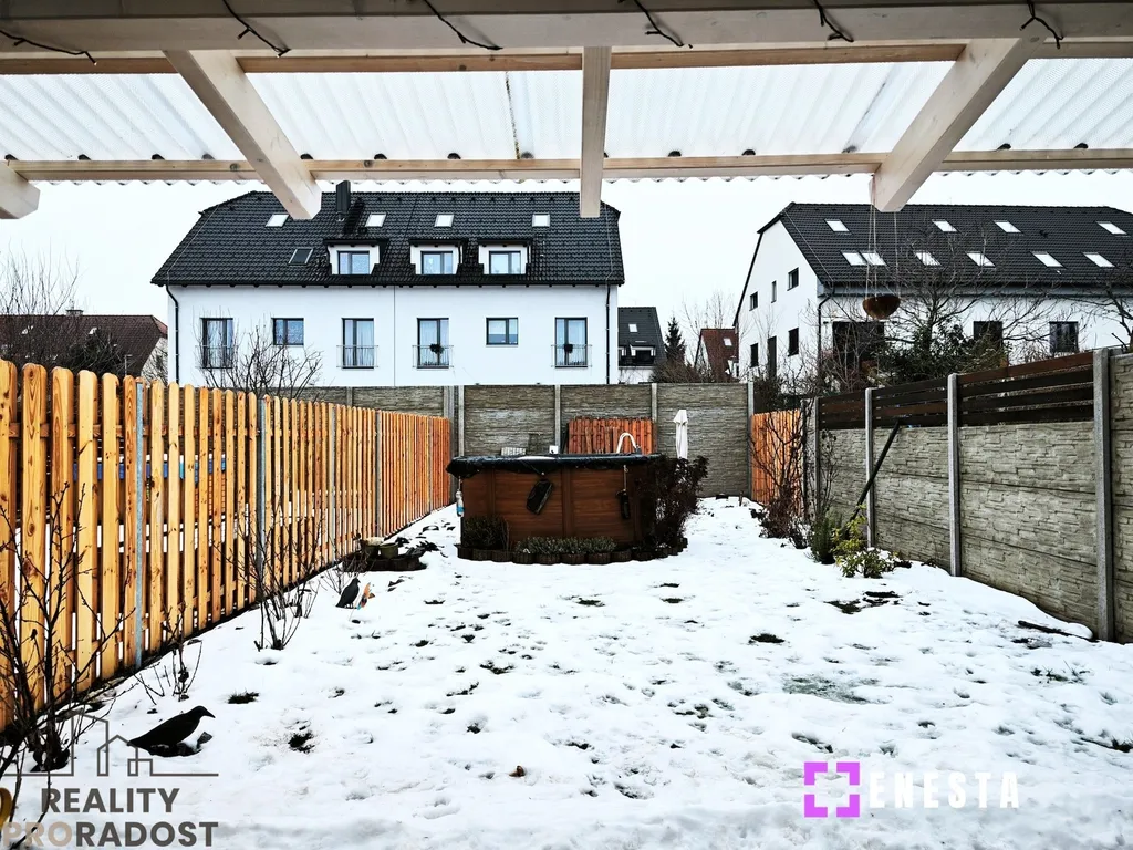 Dům je velmi prakticky řešen i v suterénu. Zde se nachází garáž, velkorysé úložné prostory a prostorná koupelna s technickým zázemím. Vytápění a ohřev vody zajišťuje kondenzační plynový kotel značky Buderus s externím zásobníkem TUV. Velkou výhodou suterénu je přímý východ na zahradu. Ta je ideálním místem pro relaxaci – disponuje novým oplocením pro vaše soukromí a nadzemním bazénem pro letní osvěžení. Parkování je bezproblémové: kromě garáže zaparkujete také přímo před ní nebo na ulici před domem.