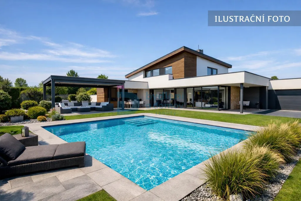 Soukromá zahrada s bazénem nabízí ideální prostor pro relaxaci, rodinné chvíle i letní společenská setkání. Díky promyšlenému řešení pozemku si dům zachovává maximální míru soukromí.