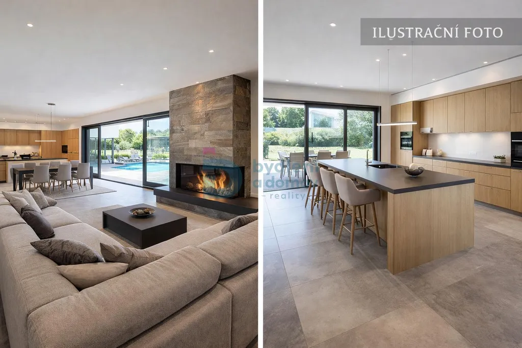 Velkorysá obytná plocha 220 m v dispozici 6+kk nabízí komfortní zázemí pro rodinný život i společenská setkání. Dominantou domu je prostorný obytný prostor s krbem, který přirozeně propojuje kuchyň, jídelnu a obývací část a vytváří atmosféru tepla a elegance.