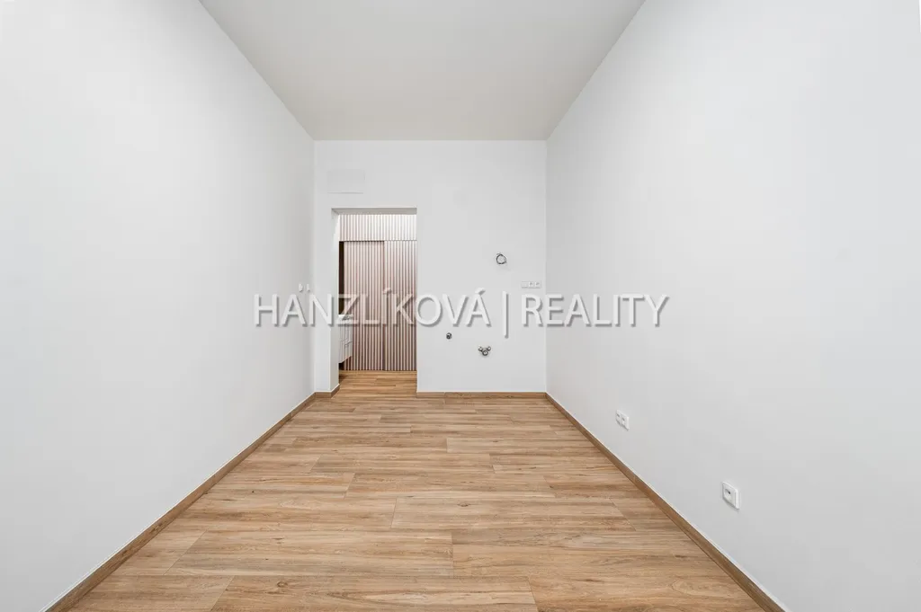 Druhá jednotka 1+kk má užitnou plochu 17 m², vlastní vstup, obytný prostor s kuchyňským koutem a samostatnou koupelnu se sprchovým koutem a toaletou. Ideální jako investiční byt k pronájmu, kancelář, ateliér nebo ubytování pro hosty.