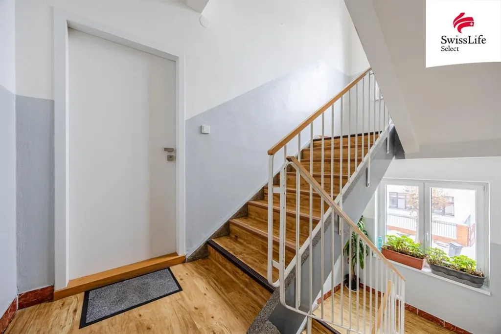 K bytu náleží prostorný sklep, kam se pohodlně vejde kolo, sportovní vybavení i sezónní věci. Cena bytu je včetně vybavení zhotoveného na míru, které bylo navrženo přímo pro tento prostor a tvoří jeho přirozenou součást.