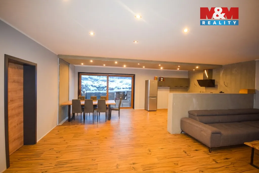 Nabízíme moderní novostavbu rodinného domu 6+kk v obci Sosnová. Jednopodlažní cihlový dům s velkorysou užitnou plochou 182 m2 stojí na slunném samostatném pozemku o celkové rozloze 1168 m2. Dominantou celého interiéru je prosvětlený obývací pokoj s kuchyňským koutem a velmi výkonnými krbovými kamny o výkonu 14 kW. Maximální tepelný komfort a nízké provozní náklady zajišťuje moderní podlahové vytápění napojené na kvalitní tepelné čerpadlo v kombinaci s okny s izolačními trojskly. Dispozice nabízí ložnici se vstupem do vlastní nedokončené koupelny, dva dětské pokoje, dvě samostatné pracovny, hlavní koupelnu se sprchovým koutem i sedací vanou, samostatné WC a dvě technické místnosti. Dům je před kolaudací, což umožňuje novým majitelům dokončení finálních prvků, přesně podle vlastních představ. Ideální bydlení pro velkou rodinu hledající prostor a moderní technologie. Lokalita nabízí výbornou dostupnost do Opavy i Krnova a soukromí na rozlehlé zahradě. Domluvte si prohlídku ještě dnes.