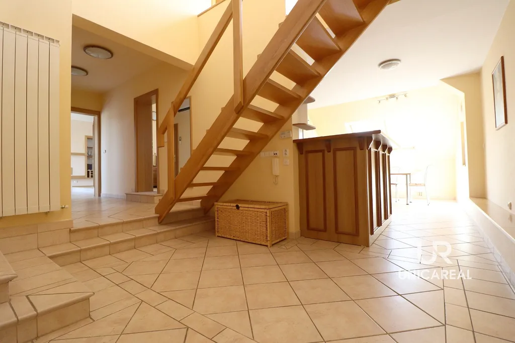 Byt se nachází ve druhém podlaží rodinného domu s podlahovou plochou 129 m², terasou 16 m² s posezením a krásným výhledem do vnitrobloku rodinných domů.