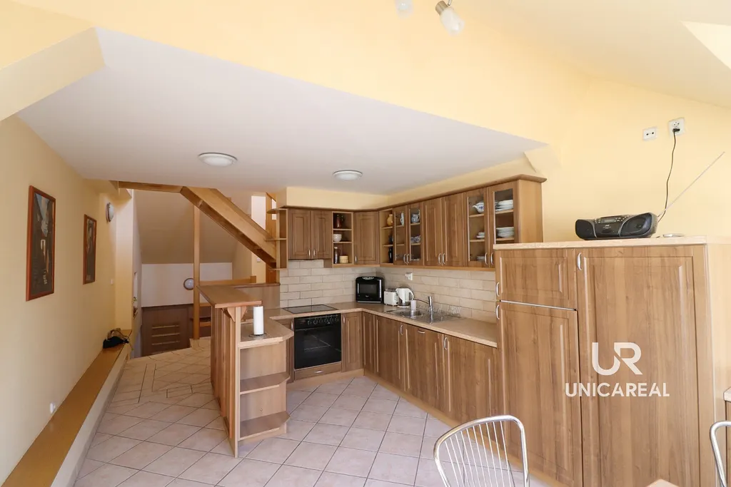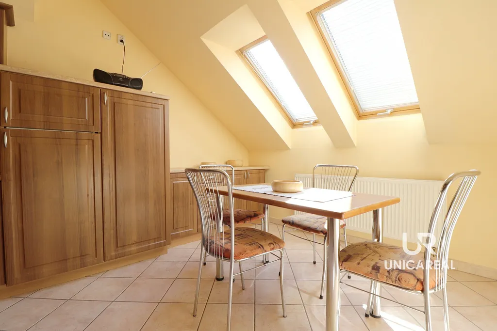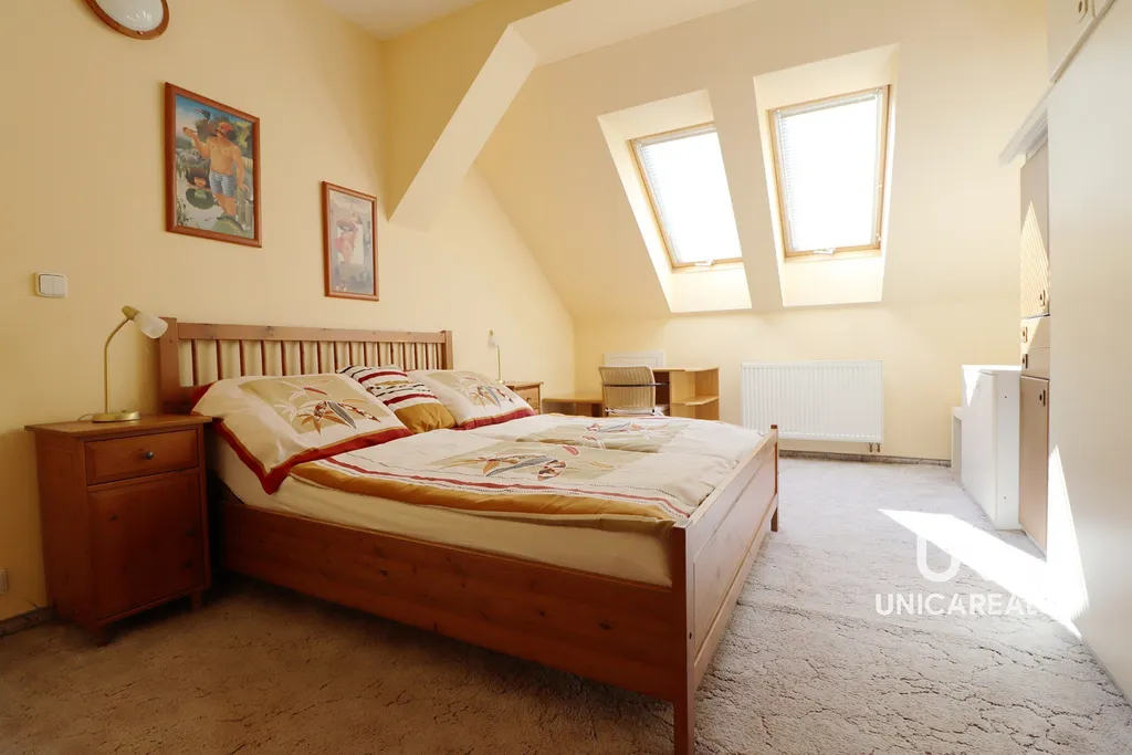 V části nad kuchyní se nachází otevřená místnost s lůžkem , který je vhodný pro případnou návštěvu, popřípadě lze místnost využít jako pracovnu. Celý byt je klimatizován.