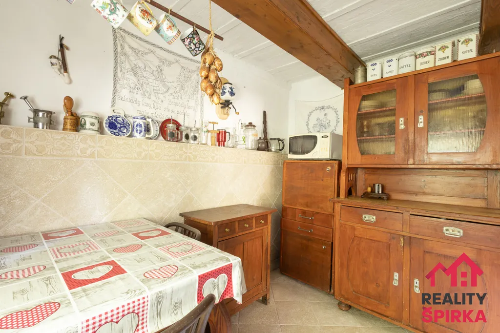 • topení: kachlová kamna, kamna v kuchyni, plyn na hranici pozemku