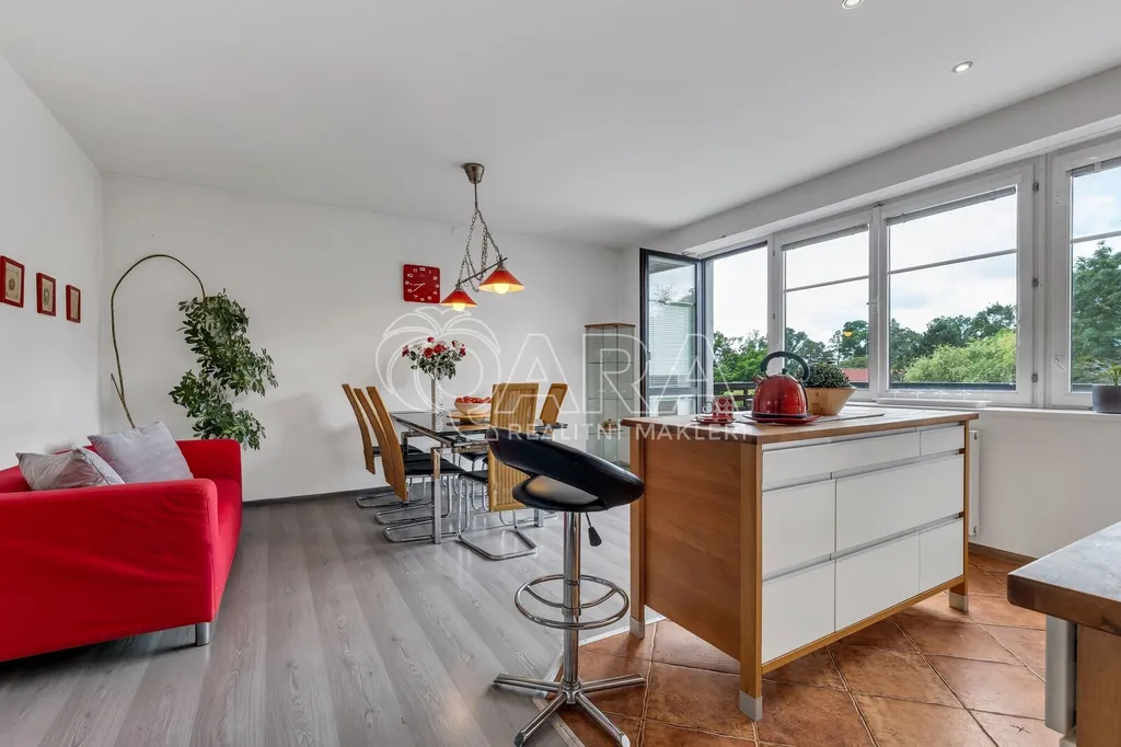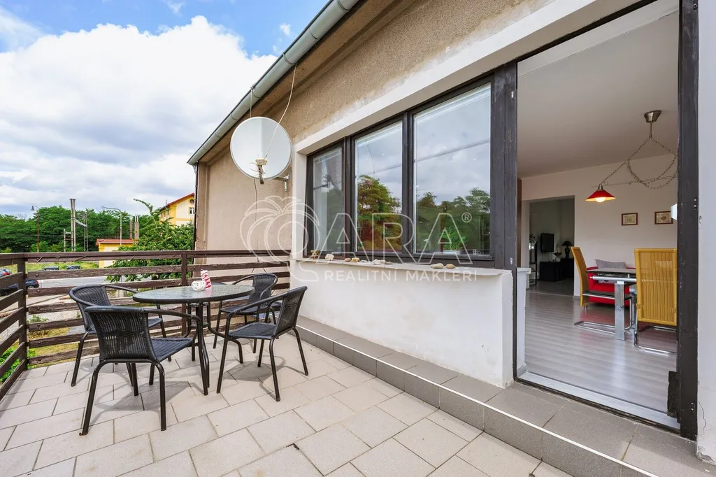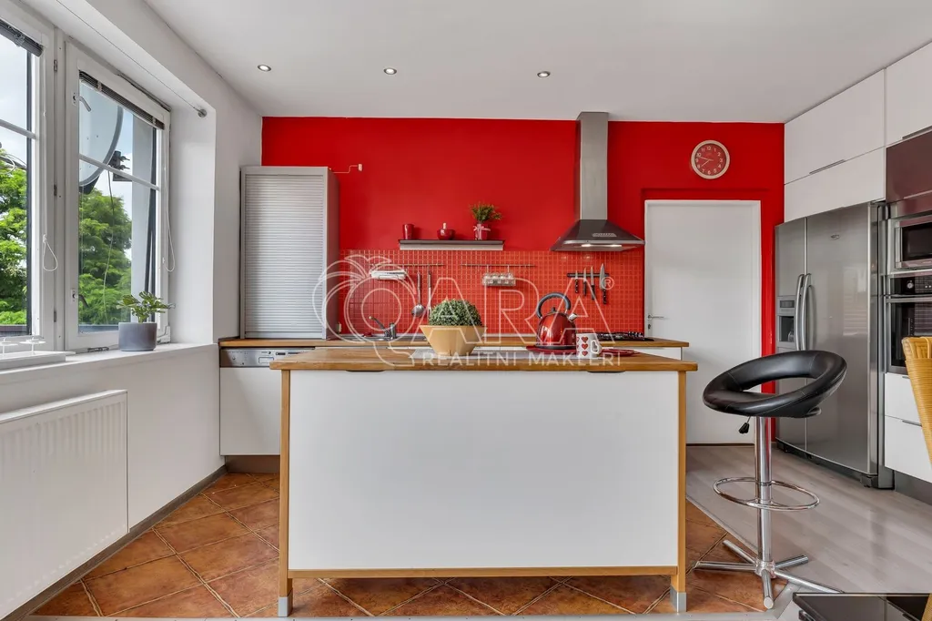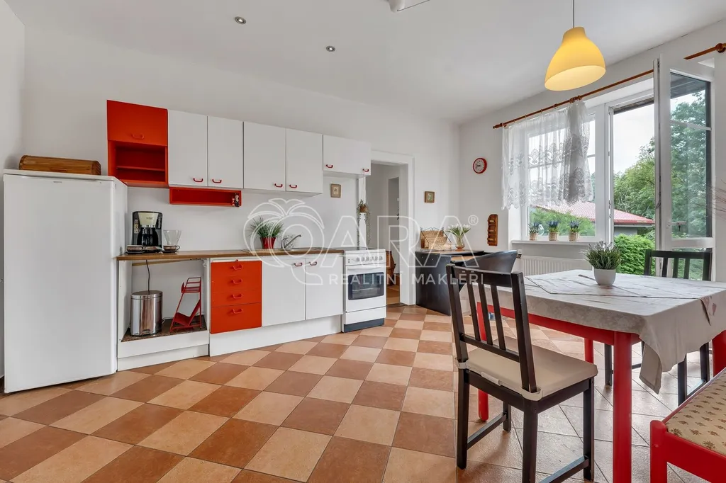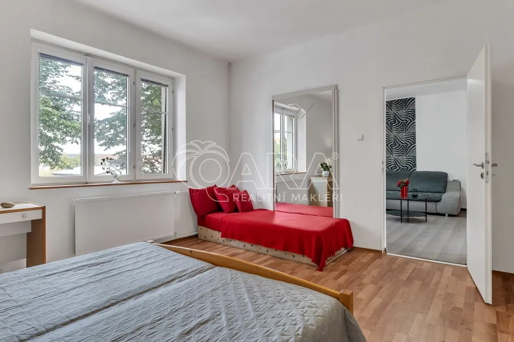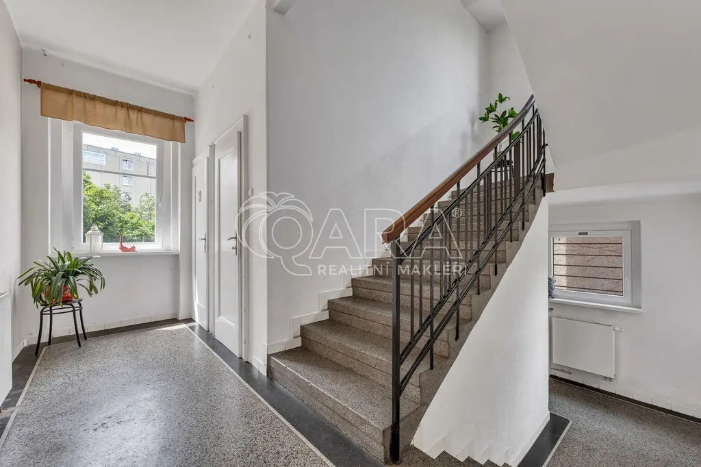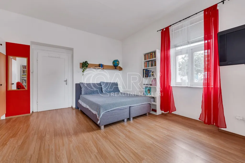 Nenápadná vila ze čtyřicátých let dvacátého století v sobě ukrývá dva plnohodnotné byty o dispozici 2 plus 1. Zahradu s bazénem propojuje s domem terasa navazující na spodní byt. Horní byt disponuje další terasou, s příjemným výhledem. Pozemek o celkové velikosti 880 metrů čtverečních pak nabízí dostatek prostoru pro odpočinek i vaše zahrádkářské nápady.