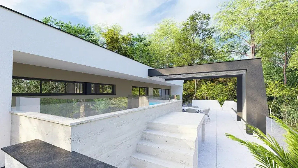 Každý apartmán disponuje svým vlastním venkovním prostorem – ať už jde o zahradu, střešní terasu nebo soukromý bazén. Tyto prostory jsou ideální pro relaxaci, zábavu s přáteli i klidné večery s výhledem na západ slunce nad mořem. Dvě soukromá parkovací místa u každé jednotky zajišťují pohodlí bez kompromisů.