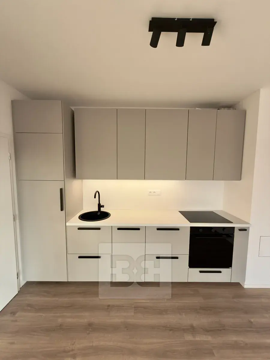 Nabízíme Vám k pronájmu byt 2+kk s obytnou plochou 44 m², situovaný v 1.NP novostavby s výtahem. Byt se sestává ze vstupní chodby, koupelny se sprchovým koutem a toaletou, obývacího pokoje s kuchyňským koutem plně vybaveným vestavnými spotřebiči - indukční varná deska, elektrická trouba, myčka, lednice s mrazákem a ložnice. K bytu náleží terasa přístupná z obou pokojů, na kterou navazuje zatravněná zahrada (ve výstavbě) V ceně pronájmu je garážové stání. Byt je vybaven podlahovým topením, rekuperací a předokenními elektrickými žaluziemi, což zajišťuje uživatelky příjemné bydlení s ohledem na nízkou energetickou náročnost bytu. Energetický štítek budovy "A"!