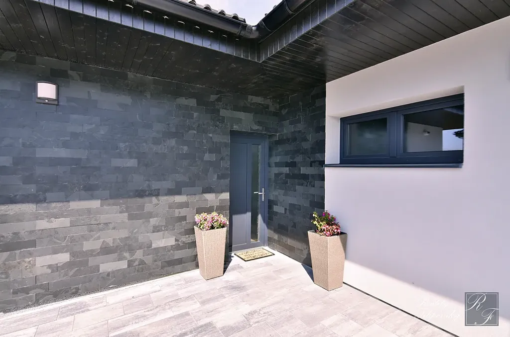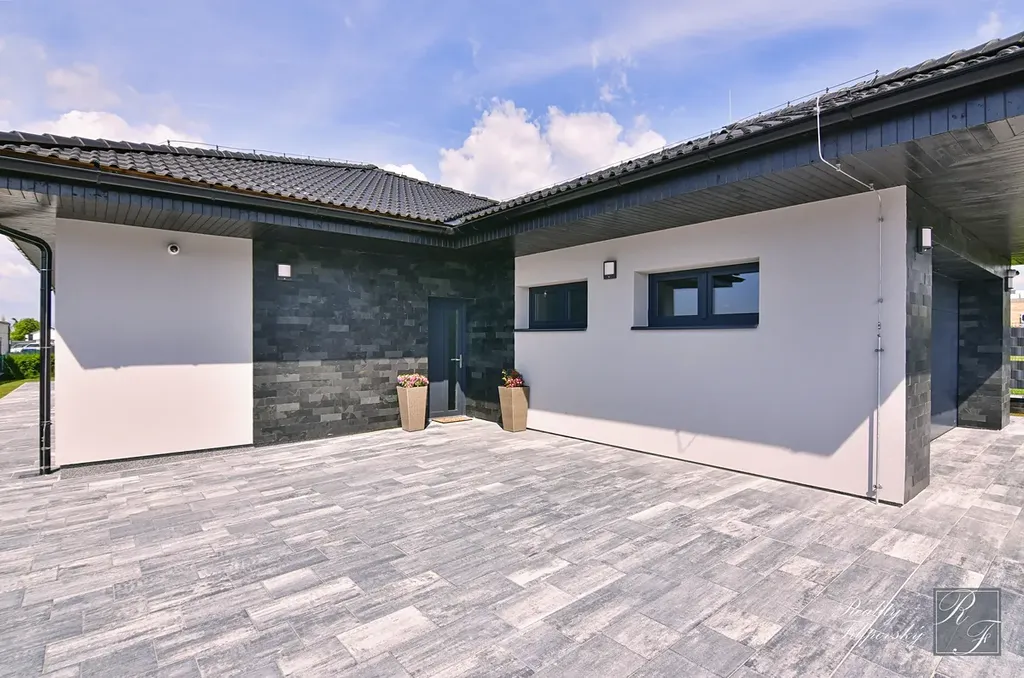 Dovoluji si Vám nabídnout zděnou novostavbu rodinného domu o podlahové ploše 178 m2 s dispozicí 5+kk a navazující dvougaráží. Jedná se o právě zkolaudovaný dům, který byl kompletně dokončen, a to včetně venkovních zpevněných ploch, oplocení, vjezdové brány i branky, venkovní terasy a upravené zahrady. Na Vás pak bude pouze osázení libovolných míst okrasnou vegetací, která je nejblíže Vašemu srdci a vkusu.