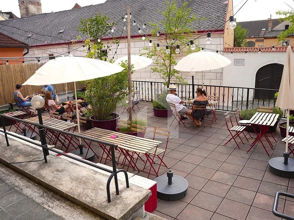 Historický dům je v současné době využíván jako PENZION se zavedenou EXKLUZIVNÍ CUKRÁRNOU. Při vstupu do domu Vás uvítá vůně čerstvě připravených výrobků. Kromě cukrárny je v přízemí domu ještě kancelář, sociální zařízení pro provoz cukrárny a technické zázemí domu. V 1. patře se nacházejí 2 apartmány s vybavenou kuchyňkou a 3 další pokoje. Všechny pokoje i apartmány mají vlastní sociální zařízení. V podkroví je k dispozici prostorný byt.