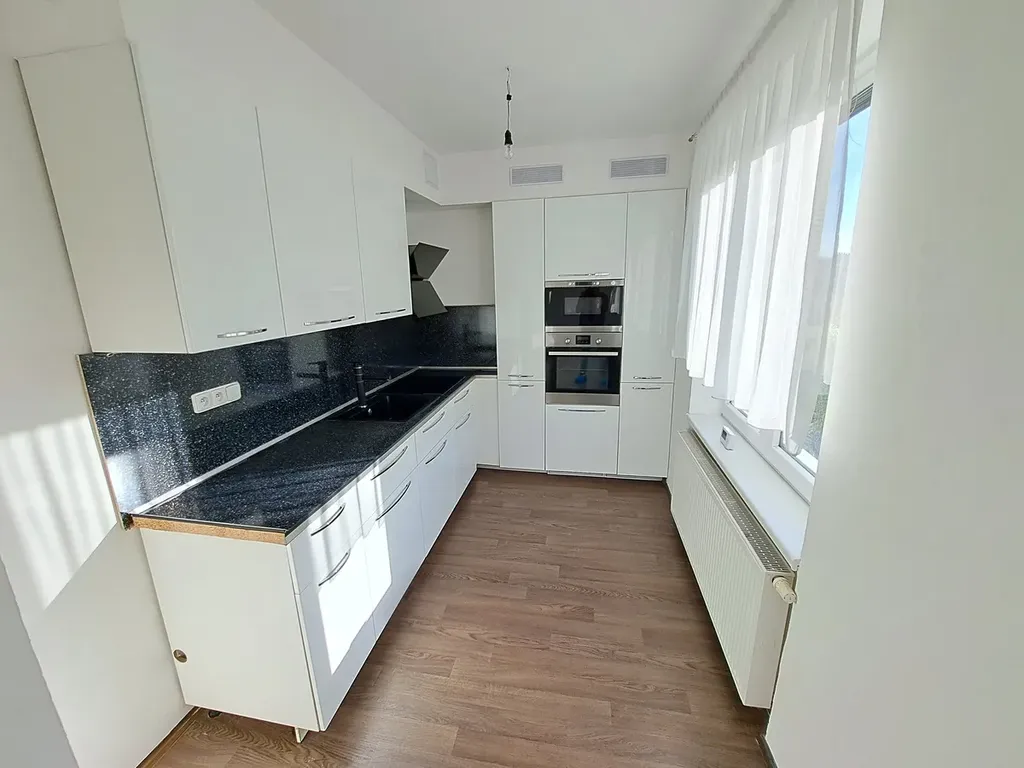 Kuchyňská linka je vybavena indukční varnou deskou, digestoří, troubou, mikrovlnnou troubou, dřezem s baterií. V koupelně je kromě vany a umyvadla také možnost dodat pračku, dále zrcadlo se světlem, topný žebřík a vlastní plynový kotel. Na toaletě je závěsné WC. V chodbě se nachází vestavěná skříň. Okna jsou plastová se žaluziemi a byt má vlastní měřiče energií.